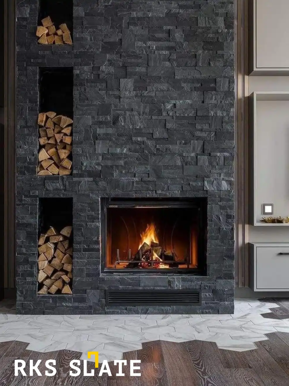 - Камин/печь. Натуральный камень идеально подходит для облицовки каминов и печей. Он сохраняет тепло и придает очагу неповторимый шарм.